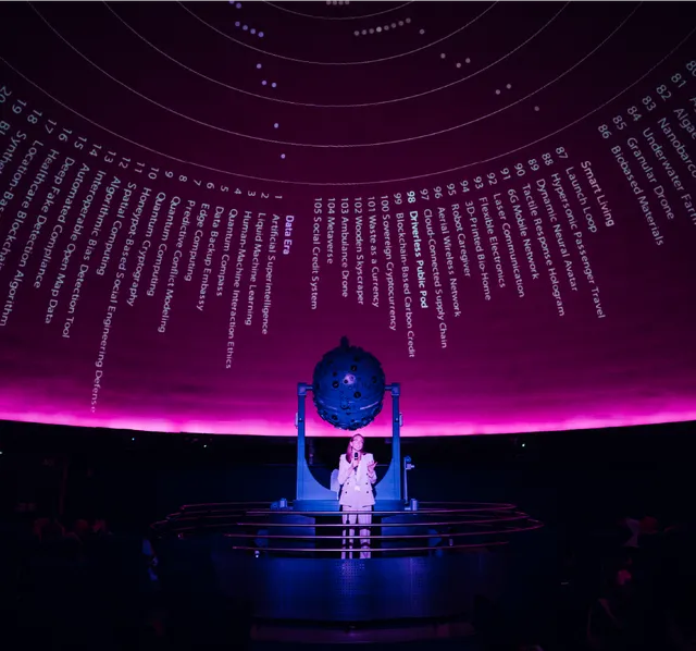 An einer langen Tafel sind Gäste eingeladen, ihre persönliche Vorstellung von Hoffnung zu erforschen – und in einem einzigen Bissen auszudrücken. Dieses partizipative Ritual des Multisensory Hacking macht das Unfassbare greifbar. Geschmack, der alle fünf Sinne vereint, wird zum Medium für Reflexion und Ausdruck. Jede Rückmeldung erzeugt synthetische Daten, die von KI in Echtzeit zu einer musikalischen Komposition verarbeitet werden – durch hyperpersonalisierte Kommunikation. Den Abschluss bildet eine Live-Performance auf der Inspiration Stage um 17:30 Uhr, in der sich individuelle Emotion in kollektive Resonanz verwandelt. Hoffnung wird spürbar, gestaltbar und teilbar.